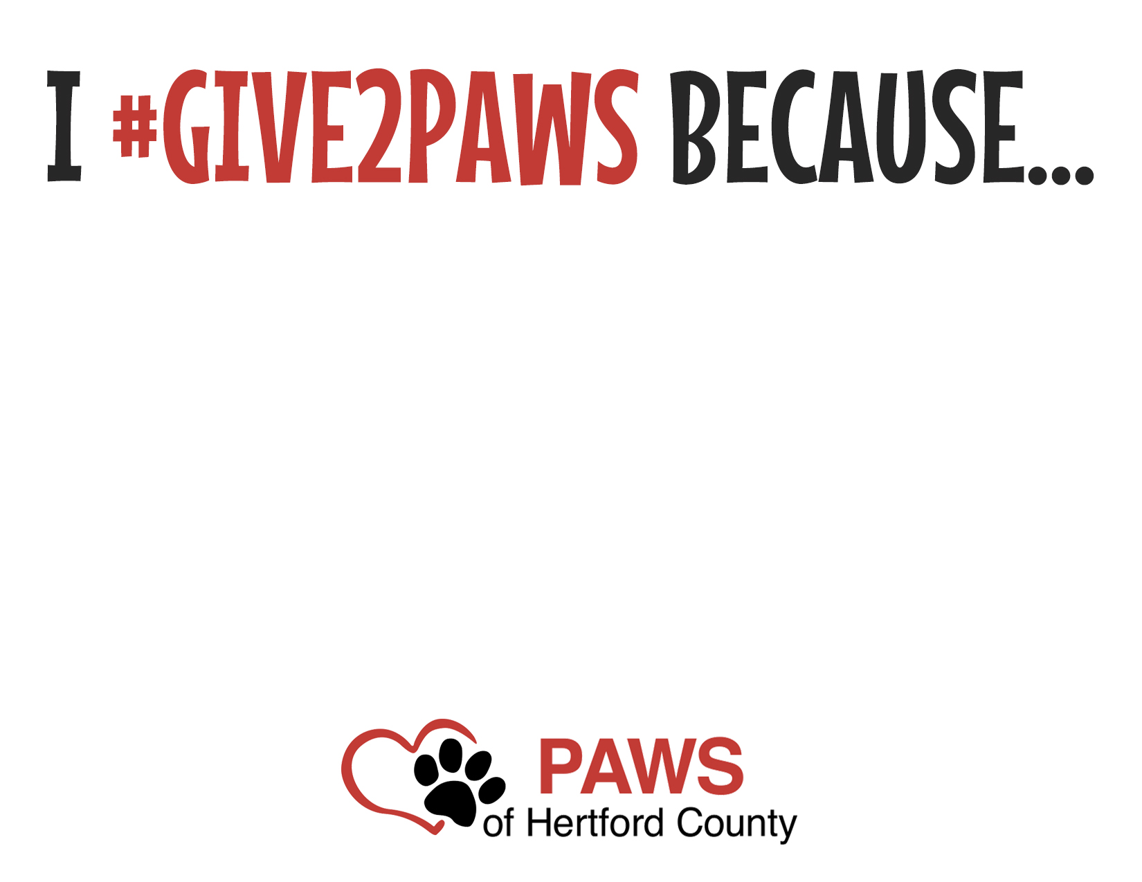 | Want to share why you Give2PAWS? Download our sign here and share on social media! If you use the #Give2PAWS hashtag, we may share it. |